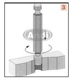 7、 取鋼絲螺套:在安裝過程中出現(xiàn)問題或者由于鋼絲螺套使用時間過久需要取出絲套,應(yīng)當(dāng)使用帶有刃的卸套工具對準螺套端口,用榔頭猛打一下,用手加力按下手柄反螺紋旋轉(zhuǎn)即可退出鋼絲螺套。