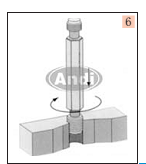 5、沖斷安裝柄  通孔時,要將絲套安裝柄沖斷,一般用沖斷器對準安裝柄,用200g左右的榔頭猛擊一下即可去除,對于18×2.5以上的粗牙絲套和14×1.25以上的細牙絲套,用尖嘴鉗上下彎曲安裝柄就可去除。